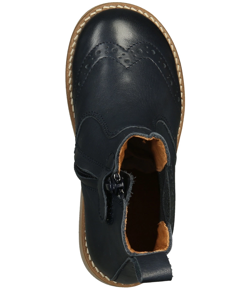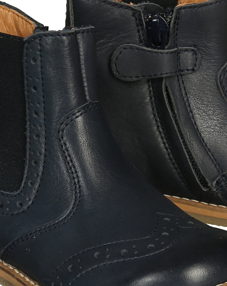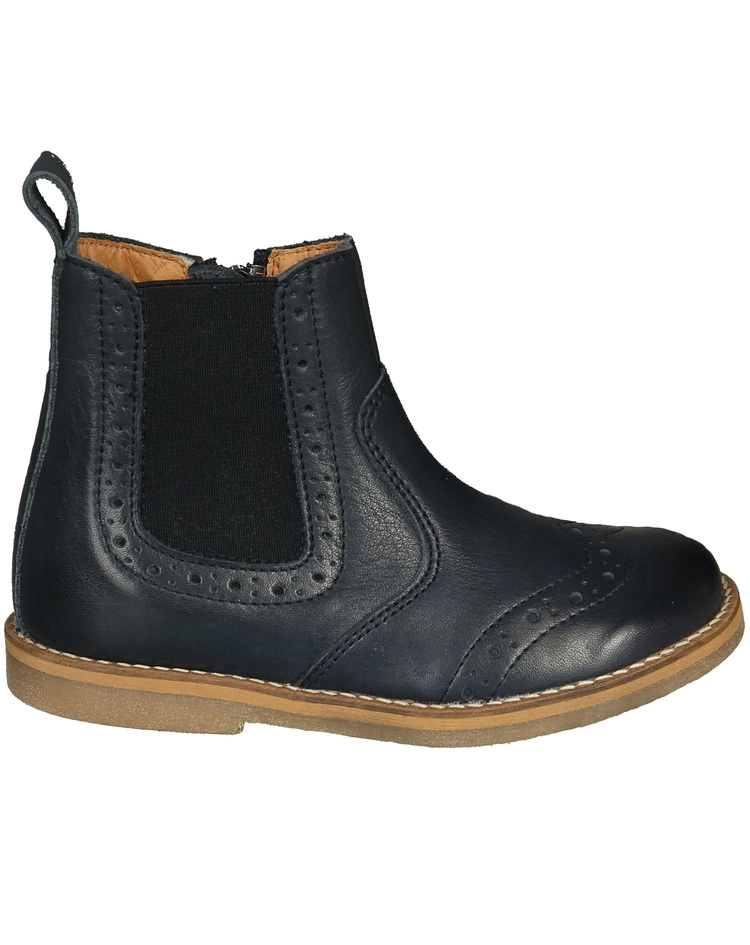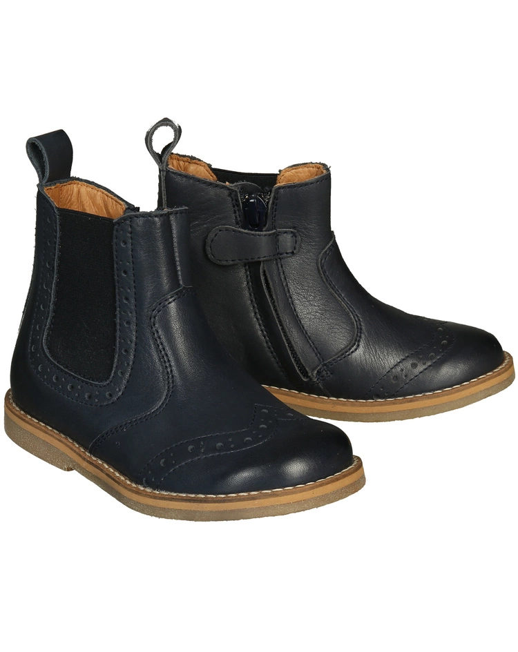Die froddo® Chelseaboots BROGUE in dark blue begleiten Kinder mit Komfort und klassischem Chic durch die Übergangszeit. Das Muster, das die Kappen ziert und den seitlichen Elastikeinsatz betont, sorgt für einen stilvollen Look. Zudem macht das glatte Leder außen die Stiefeletten pflegeleicht. Innen sind sie ebenfalls ganz aus Leder und der Gummibesatz an den Außensohlen sorgt für einen sicheren Tritt.