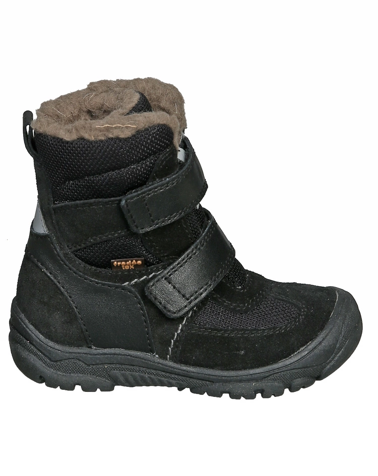 Mit den wasserfesten Klett-Boots LINZ WOOL HIGH in black von froddo® ist der Nachwuchs in der kalten Jahreszeit den ganzen Tag über komfortabel unterwegs. Die Lederschuhe sind mit Lammfell ausgekleidet, wobei sich das Innenmaterial sanft und wärmend an die Kinderfüße schmiegt. Für ein einfaches An- und Ausziehen lässt sich der Einstieg mithilfe von 2 Klettverschlüssen individuell in der Weite anpassen. Die flexible Außensohle besteht aus thermoplastischem Gummi und ist zudem mit einem leichten Profil versehen. Somit ist für ein unbeschwertes Laufen auf glatten und matschigen Böden gesorgt.