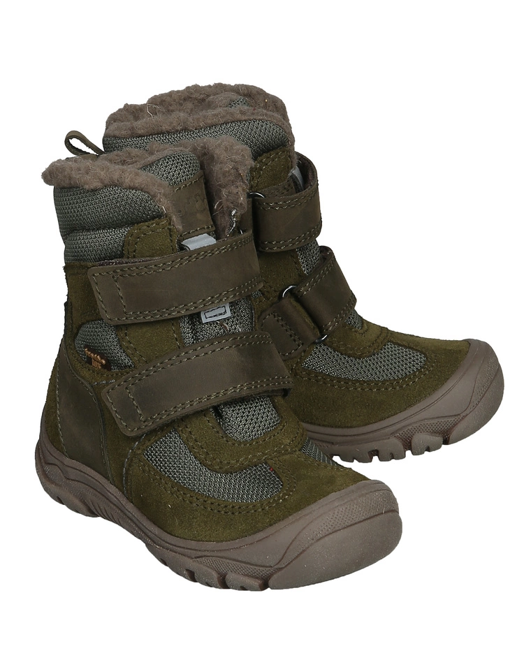 Mit den wasserfesten Klett-Boots LINZ WOOL HIGH in dark green von froddo® ist der Nachwuchs in der kalten Jahreszeit den ganzen Tag über komfortabel unterwegs. Die Lederschuhe sind mit Lammfell ausgekleidet, wobei sich das Innenmaterial sanft und wärmend an die Kinderfüße schmiegt. Für ein einfaches An- und Ausziehen lässt sich der Einstieg mithilfe von 2 Klettverschlüssen individuell in der Weite anpassen. Die flexible Außensohle besteht aus thermoplastischem Gummi und ist zudem mit einem leichten Profil versehen. Somit ist für ein unbeschwertes Laufen auf glatten und matschigen Böden gesorgt.