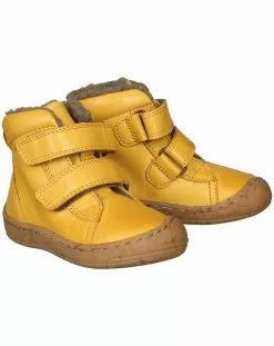 Mit den Leder-Klettstiefeln MINNI WINTER gefüttert in yellow von froddo® ist der Nachwuchs in der kalten Jahreszeit den ganzen Tag über komfortabel unterwegs. Die Lederschuhe sind mit Lammfell ausgekleidet, wobei sich das Innenmaterial sanft und wärmend an die Kinderfüße schmiegt. Für ein einfaches An- und Ausziehen lässt sich der Einstieg mithilfe von 2 Klettverschlüssen individuell in der Weite anpassen. Darüber hinaus dient die rückseitige Schlaufe als zusätzliche Einstiegshilfe. Die flexible Außensohle besteht aus thermoplastischem Gummi und ist zudem mit einem leichten Profil versehen. Somit ist für ein unbeschwertes Laufen auf glatten aber auch auf matschigen Böden gesorgt.