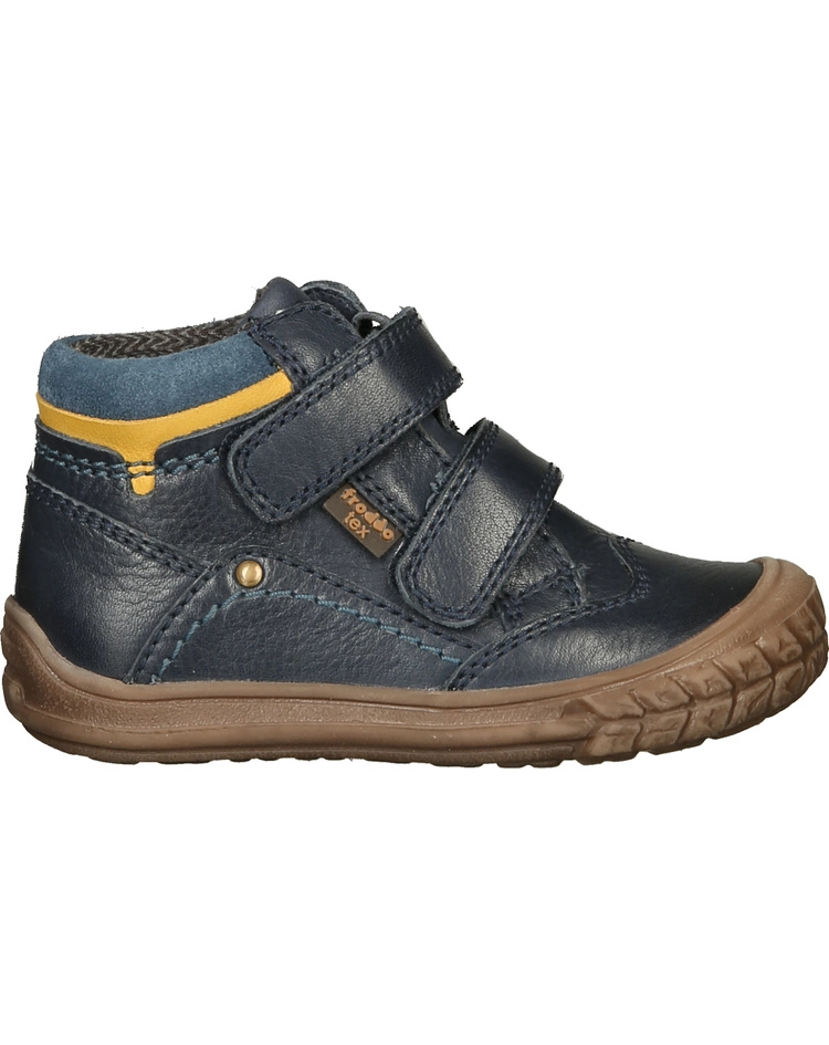 Die Leder-Klettstiefel NAIK TEX in blue von froddo® schützen kleine Füße ganz wunderbar und sind lange haltbar sowie leicht anzuziehen – genau richtig für den ungeduldigen Nachwuchs. Die robusten und auch wasserfesten Lederschuhe haben je 2 Klettriegel und schmiegen sich mit ihrem weichen Material angenehm an. Der verdickte Schaftrand gibt dem Fuß Halt. Außerdem sind Kappen und Fersen mit dem Sohlenmaterial verstärkt. Innen haben die Schuhe ein weiches Textilfutter.