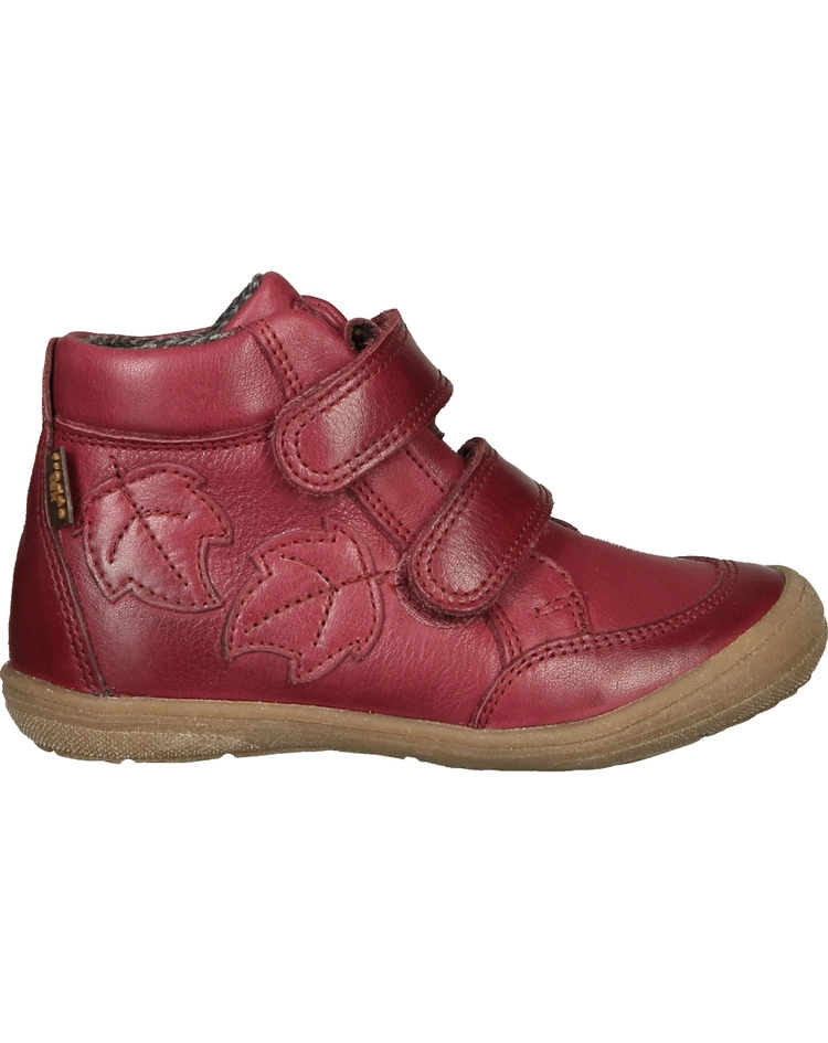 Die Leder-Klettstiefel ROBERTA TEX in bordeaux von froddo® schützen kleine Füße ganz wunderbar und sind lange haltbar sowie leicht anzuziehen – genau richtig für den ungeduldigen Nachwuchs. Die robusten und auch wasserfesten Lederschuhe haben je 2 Klettriegel und schmiegen sich mit ihrem weichen Textilfutter angenehm an. Optisch aufgewertet werden die Schuhe durch ihre herbstliche Dekoration an den Außenseiten.