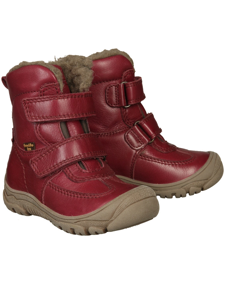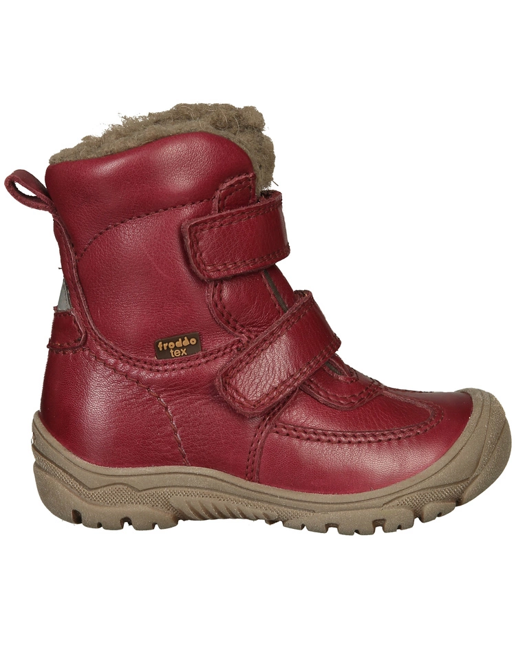 Mit den wasserfesten Leder-Winterboots LINZ TEX HIGHT gefüttert in bordeaux von froddo® ist der Nachwuchs in der kalten Jahreszeit den ganzen Tag über komfortabel unterwegs. Die Lederschuhe sind mit Lammfell ausgekleidet, wobei sich das Innenmaterial sanft und wärmend an die Kinderfüße schmiegt. Für ein einfaches An- und Ausziehen lässt sich der Einstieg mithilfe von 2 Klettverschlüssen individuell in der Weite anpassen. Die flexible Außensohle besteht aus thermoplastischem Gummi und ist zudem mit einem leichten Profil versehen. Somit ist für ein unbeschwertes Laufen auf glatten und matschigen Böden gesorgt.