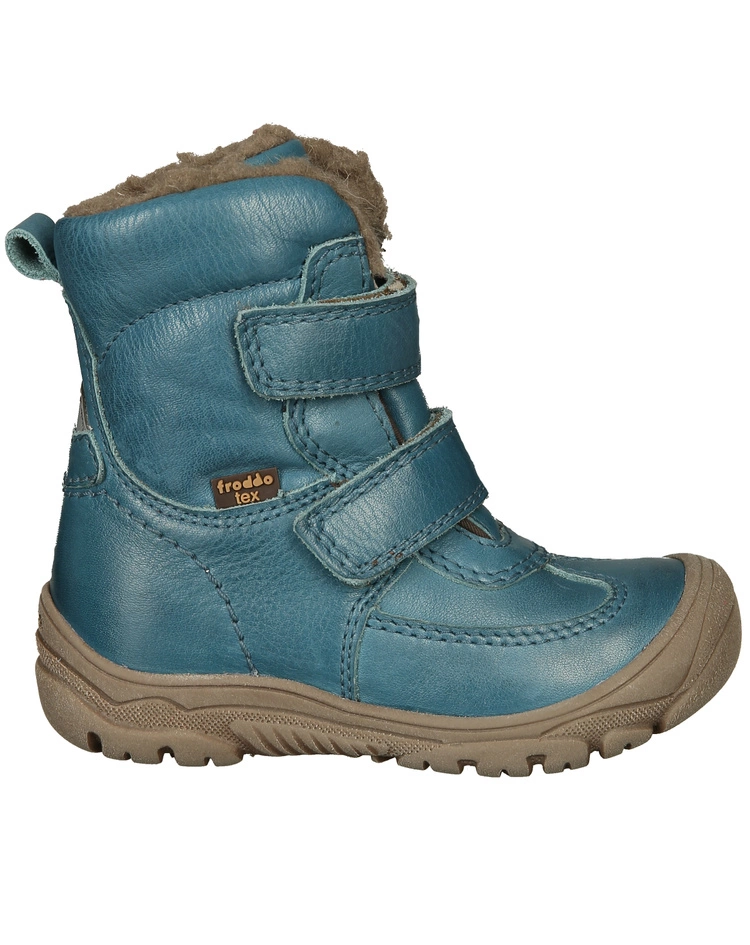 Mit den wasserfesten Leder-Winterboots LINZ TEX HIGHT gefüttert in dark denim von froddo® ist der Nachwuchs in der kalten Jahreszeit den ganzen Tag über komfortabel unterwegs. Die Lederschuhe sind mit Lammfell ausgekleidet, wobei sich das Innenmaterial sanft und wärmend an die Kinderfüße schmiegt. Für ein einfaches An- und Ausziehen lässt sich der Einstieg mithilfe von 2 Klettverschlüssen individuell in der Weite anpassen. Die flexible Außensohle besteht aus thermoplastischem Gummi und ist zudem mit einem leichten Profil versehen. Somit ist für ein unbeschwertes Laufen auf glatten und matschigen Böden gesorgt.