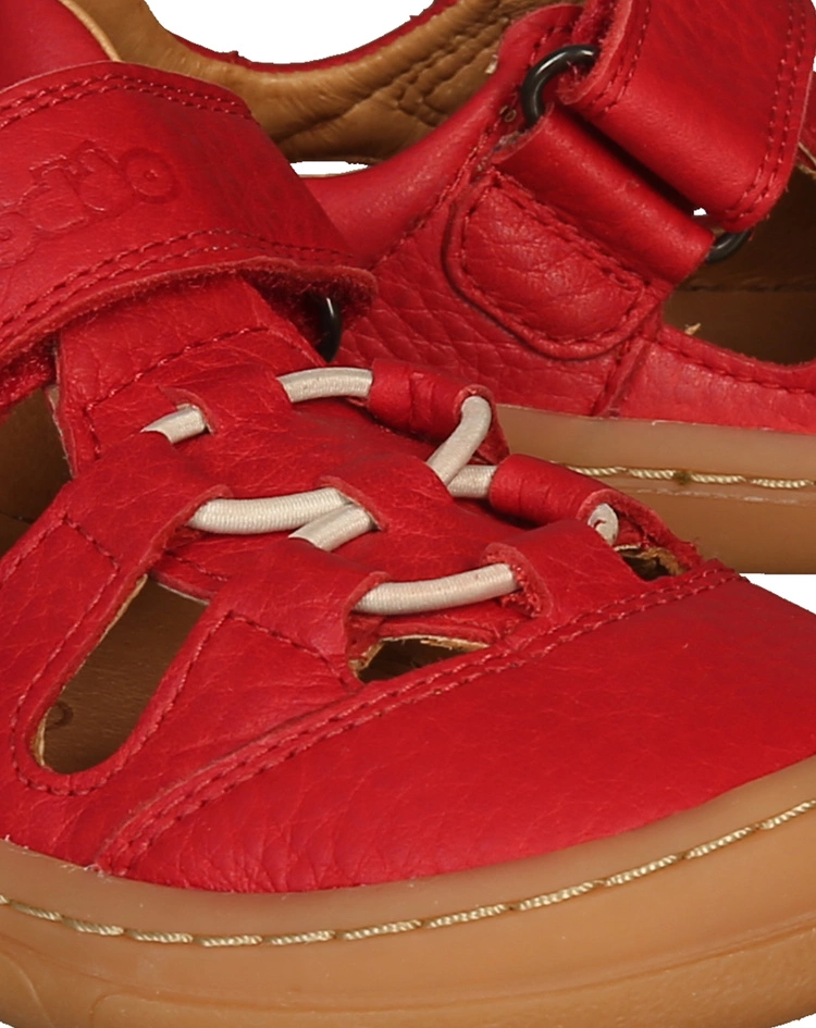 Die leichten Sandalen BAREFOOT ELASTIC in red von froddo® lassen die Kinderfüße atmen, stärken die Fußmuskeln und verleihen mit dem gepolsterten Einstieg ein komfortables Tragegefühl. Die Barfußschuhe verfügen über eine rutschhemmende Gummisohle und Klettriemen, über die sich die Passform optimal regulieren lässt. Die Außensohle zieht sich hierbei im Bereich der Zehen und Fersen schützend hoch.