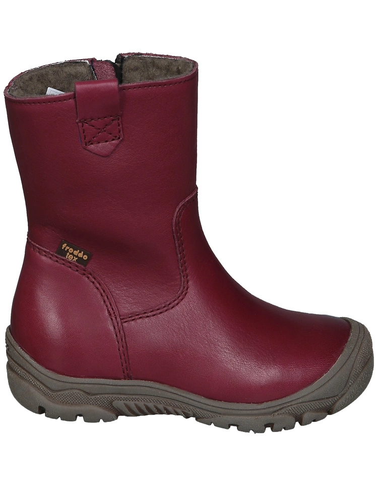 Für den Alltag sind die wasserfesten Winter-Boots LINZ WOOL in bordeaux von froddo® ideal geeignet. Mit dem seitlichen Reißverschluss sind Kinder schnell in die Stiefel hineingeschlüpft und können sofort losspazieren. Dabei bieten die Schuhe mit ihren verstärkten Zehen- und Fersenbereichen sowie ihrer rutschhemmenden Laufsohle einen rundum optimalen Halt. Innen sorgt wärmendes Futter für ein angenehmes Tragegefühl.